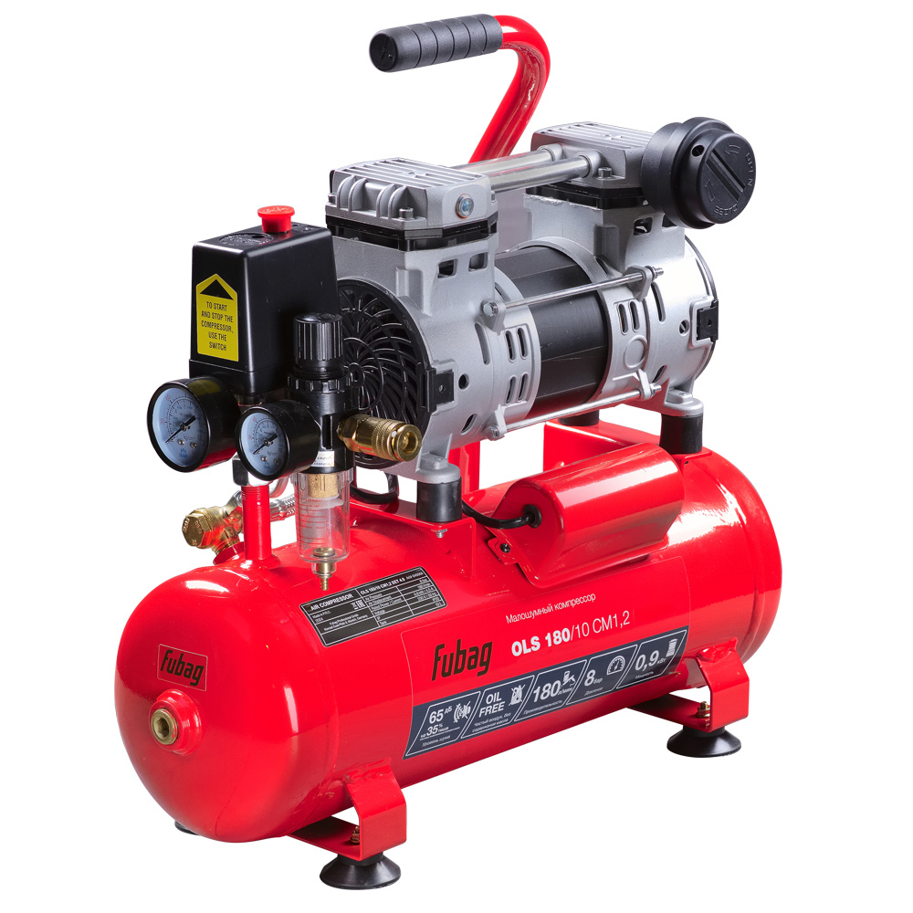 Безмасляный коаксиальный компрессор Fubag OLS 180/10 CM1.2 производительностью 180 л/мин - лучший выбор, если нужен чистый, без примесей масла, воздух при работе с краскопультами, аэрографами и другими окрасочными инструментами для проведения ответственных покрасочных работ.