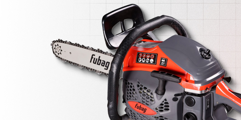 Бензопилы Фубаг оснащаются инерционным тормозом цепи, который при резком рывке остановит цепь еще до момента касания рычага тормоза рукой оператора, т.е. еще до момента срабатывания контактного тормоза.